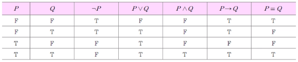 - 명제기호(아래표) 와 참과 거짓을 나타내는 T와 F